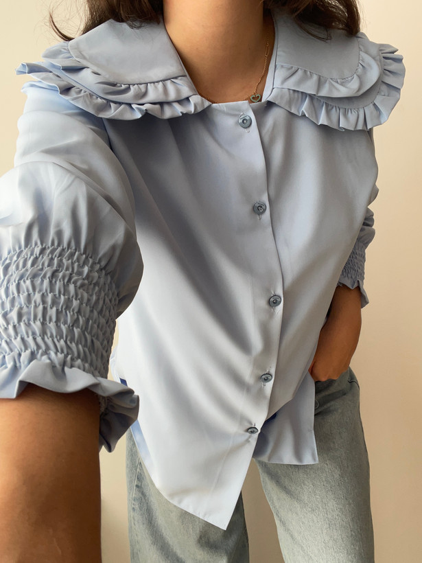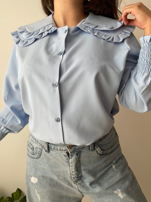 شومیز پینترستی دخترانه یقه ب ب فری سایز آبی آسمانی کد۰۶