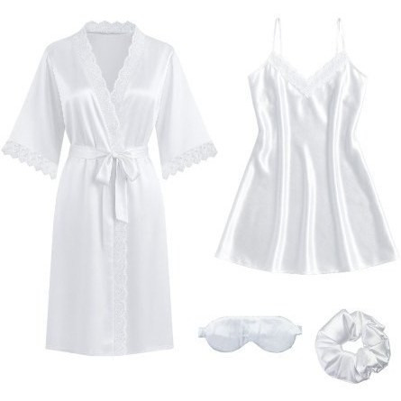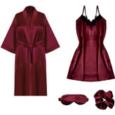 ست لباس خواب ساتن پیراهن،رومبدوشامبر،کش مو،چشمبند